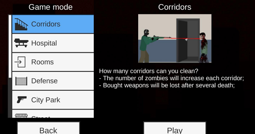 游戏提供防御模式或清除模式供选择,玩家可根据策略灵活切换;多样化的武器系统,包括步枪、霰弹枪等,帮助抵御僵尸群的进攻;核心目标是阻止僵尸越过防线或扑倒玩家,考验反应与战术能力。
