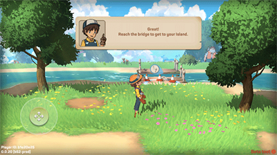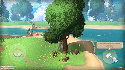 3、根据任务提示操控方向杆移动,目标到达河边。