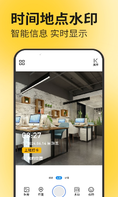 今明水印相机实用拍照助手是一款高效便捷的拍照应用,专为满足用户多样化的记录需求而设计。它集成了多种智能水印功能,用户可根据实际场景灵活选择,在拍摄过程中自动添加水印,操作简单快捷。无论是工作考勤、工程管理、旅行留念,还是宝宝成长记录,这款软件都能轻松应对,支持一键分享照片,让美好瞬间广泛传播。此外,用户可自定义专属水印,有效保护原创内容,结合强大的美颜效果,确保每张照片清晰美观。