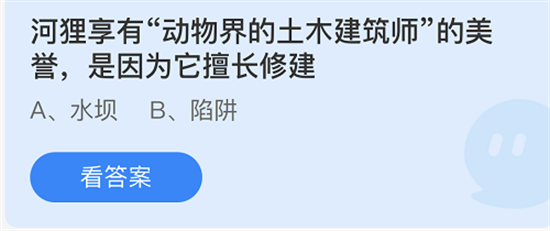 2、河狸享有动物界的土木建筑师的美誉是因为它擅长修建?